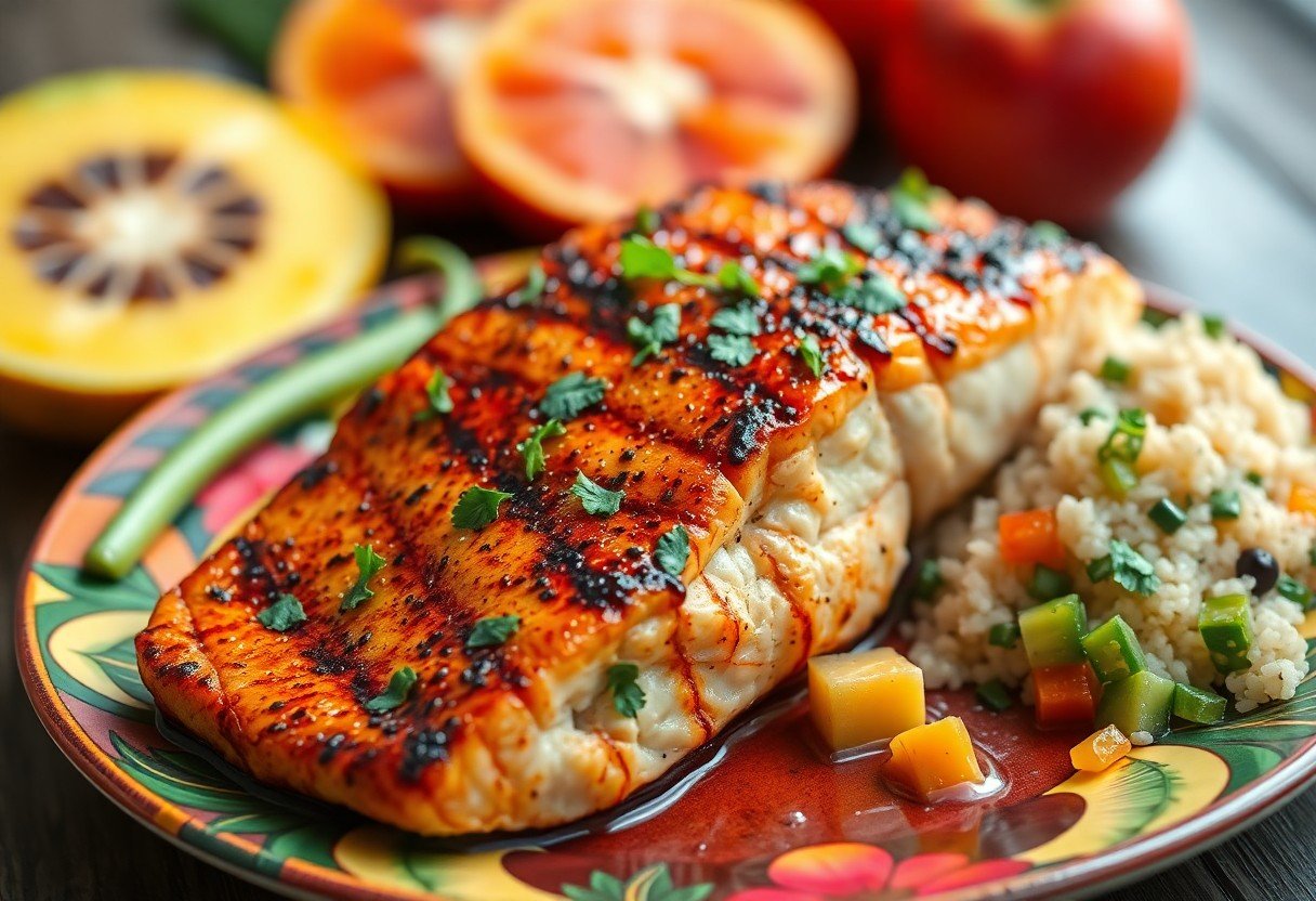 To create a truly balanced meal, consider the addition of rice or grain-based side dishes to your jerk salmon. Coconut rice, infused with creamy coconut milk, serves as a great complement, effortlessly merging tropical flavors with your main dish while delivering a subtle sweetness that contrasts the heat of the salmon. Quinoa is another excellent option, as it packs a protein punch and provides a slightly nutty flavor. This ancient grain is gluten-free and brings a lovely texture along with a healthy dose of fiber.