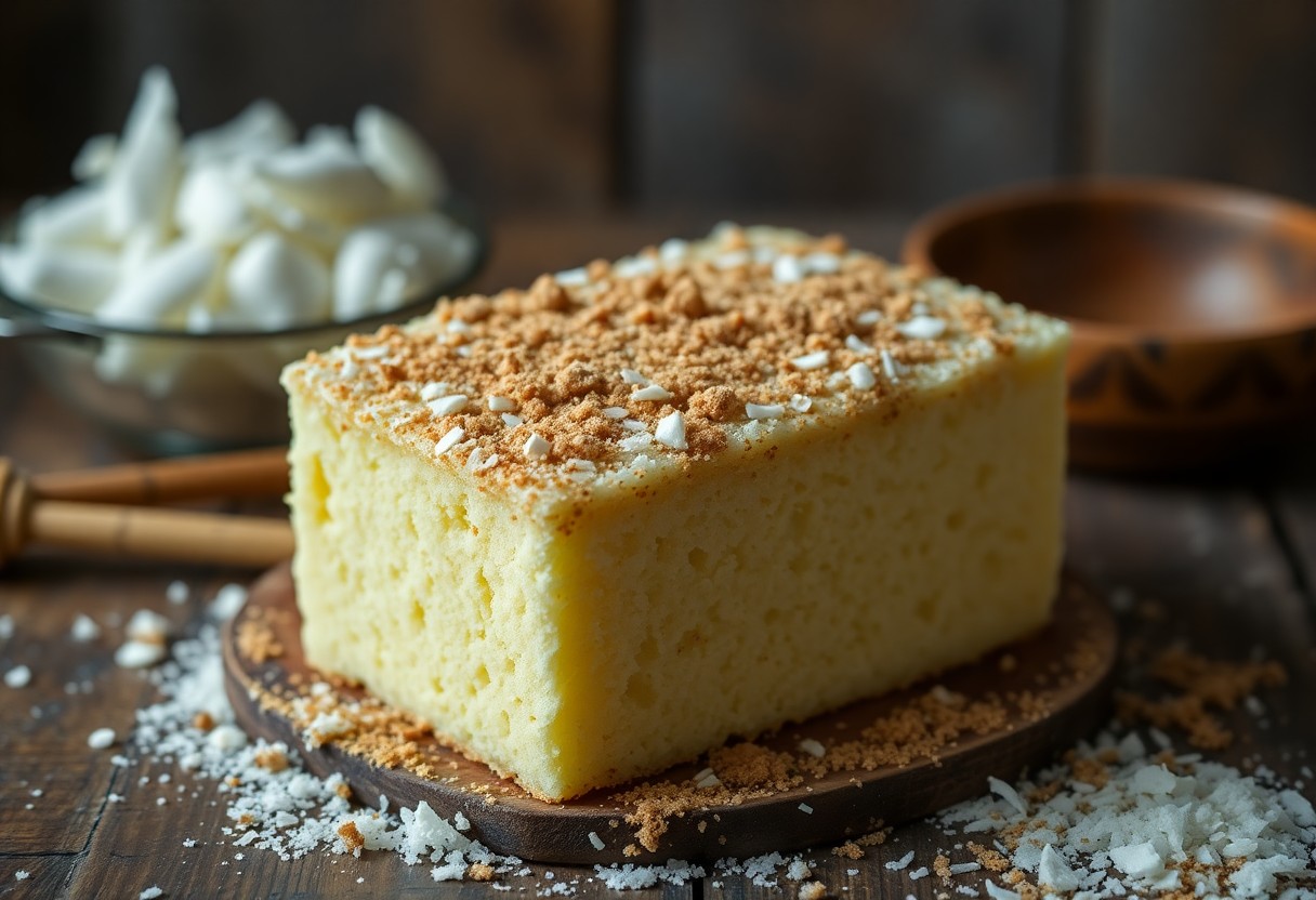 The backbone of any grater cake recipe is undoubtedly the fresh coconut and sugar. For the best results, choose a ripe coconut that is firm to the touch. You’ll want to extract the white flesh and grate it finely, as this enhances the texture and overall flavor of your cake. Using around 2 to 3 cups of grated coconut gives the cake its signature taste and chewiness. Pair this with an equal measure of granulated sugar, which not only sweetens the mixture but also helps to achieve that delightful, caramel-like finish when baked.