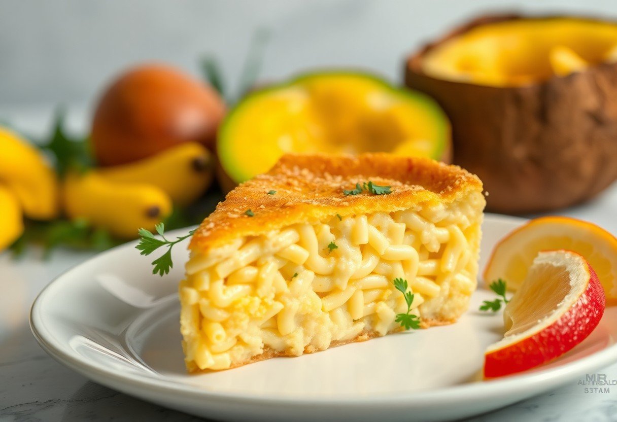 What makes Barbadian macaroni pie especially delightful is the blend of seasonings and textures. You can enhance the dish by incorporating aromatic spices like thyme and black pepper, which create a comforting yet exciting flavor profile. This rich blend sets it apart from traditional macaroni and cheese. The use of various non-dairy alternatives, such as coconut milk or cashew cream, allows you to enjoy a decadent, creamy texture without sacrificing heart health. You’ll find that adding finely chopped vegetables, such as bell peppers or onions, delivers a wonderful crunch and extra nutrition to really round out your meal.